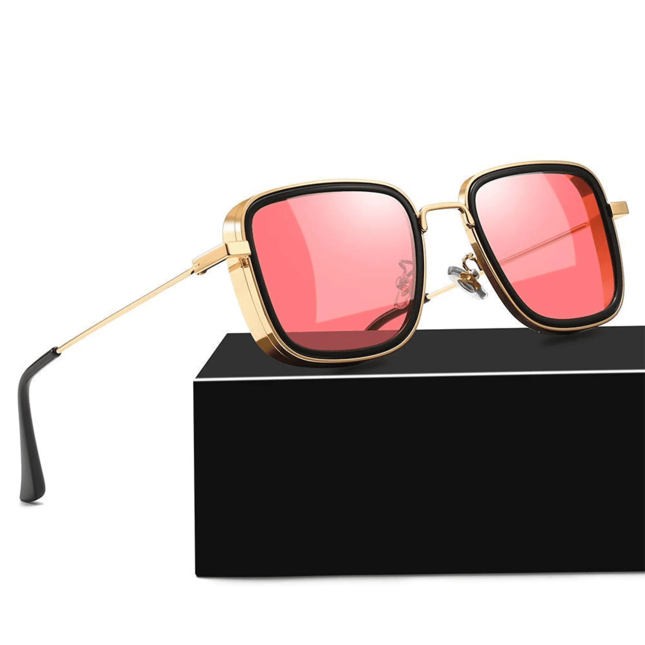 Fame Series Retro Square Sunglasses - Gold Frame Pink Lens