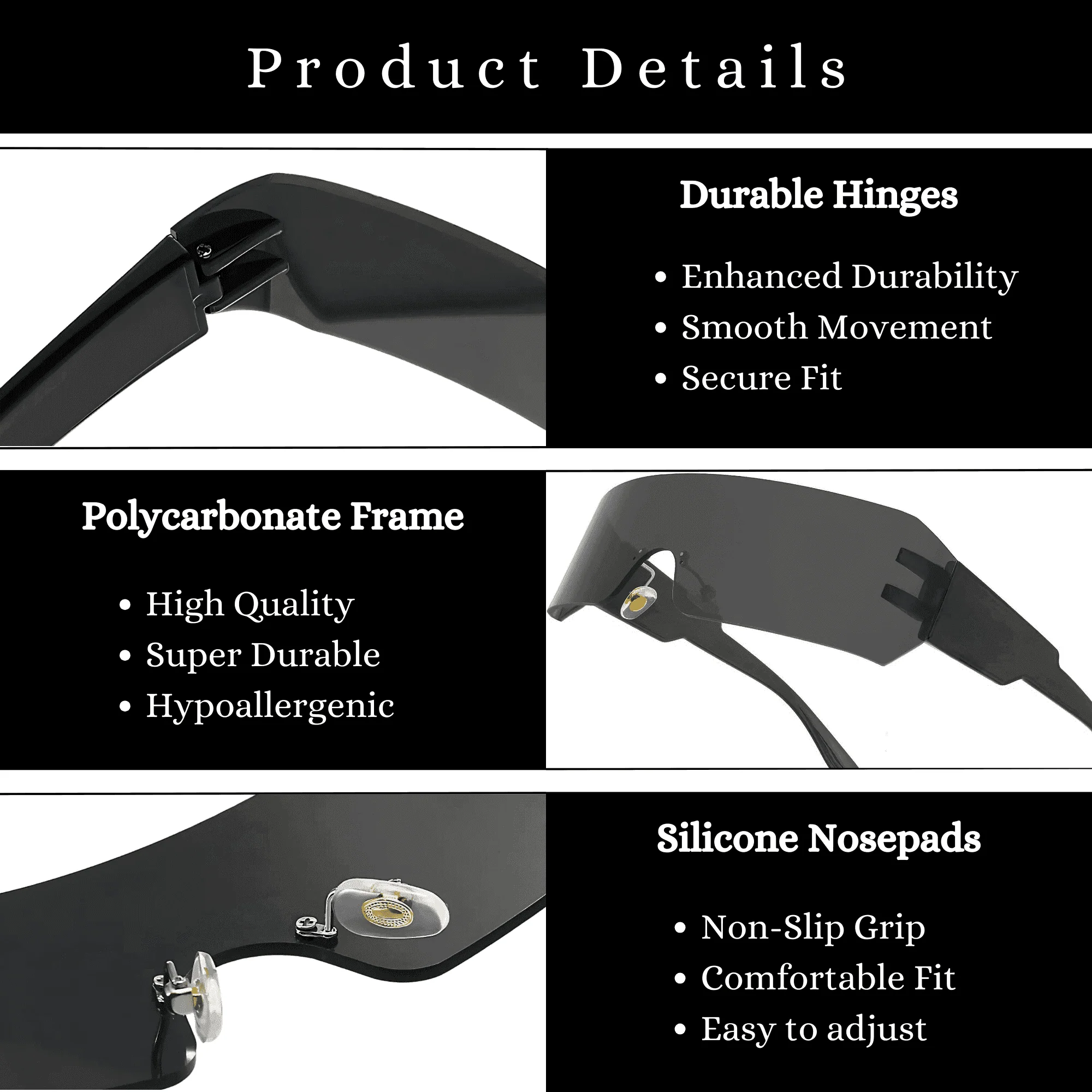 - Durable Polycarbonate Frame – Lightweight yet super strong, the frame is hypoallergenic and built to withstand daily wear.