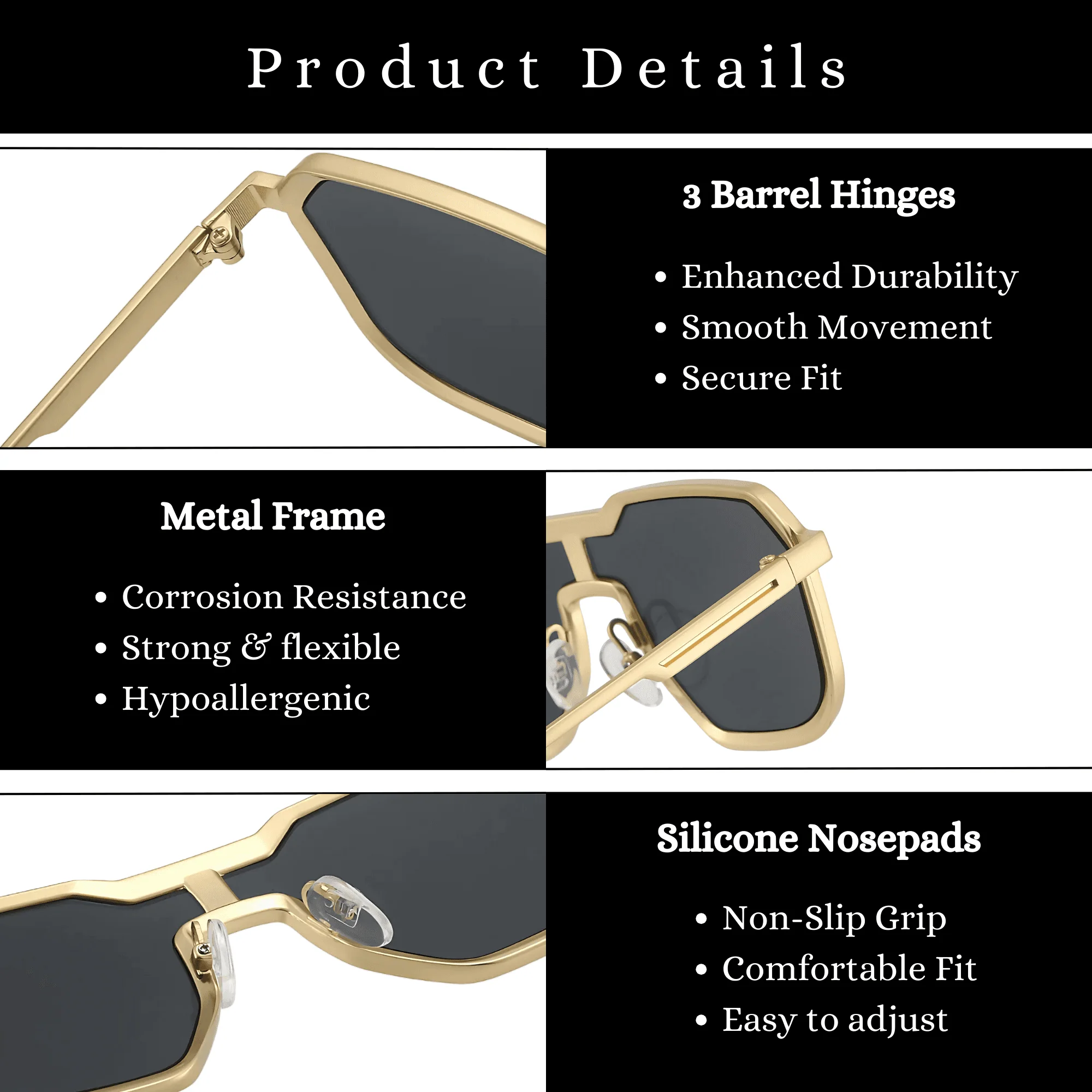 Step up your eyewear game with the 4Flaunt Monster Series Square Irregular Sunglasses – the ultimate choice for those who want to stand out. Combining bold design with high-quality craftsmanship, these sunglasses are designed to be both stylish and functional. With UV400 protection, they shield your eyes from harmful UVA and UVB rays, while the metal frame provides durability with a sleek look. The unique square-irregular shape adds a touch of modern edge, making it ideal for any trendsetter. Equipped with 3-barrel metal hinges and comfortable silicone nosepads, these sunglasses ensure a comfortable fit for both men and women, making them perfect for all-day wear.